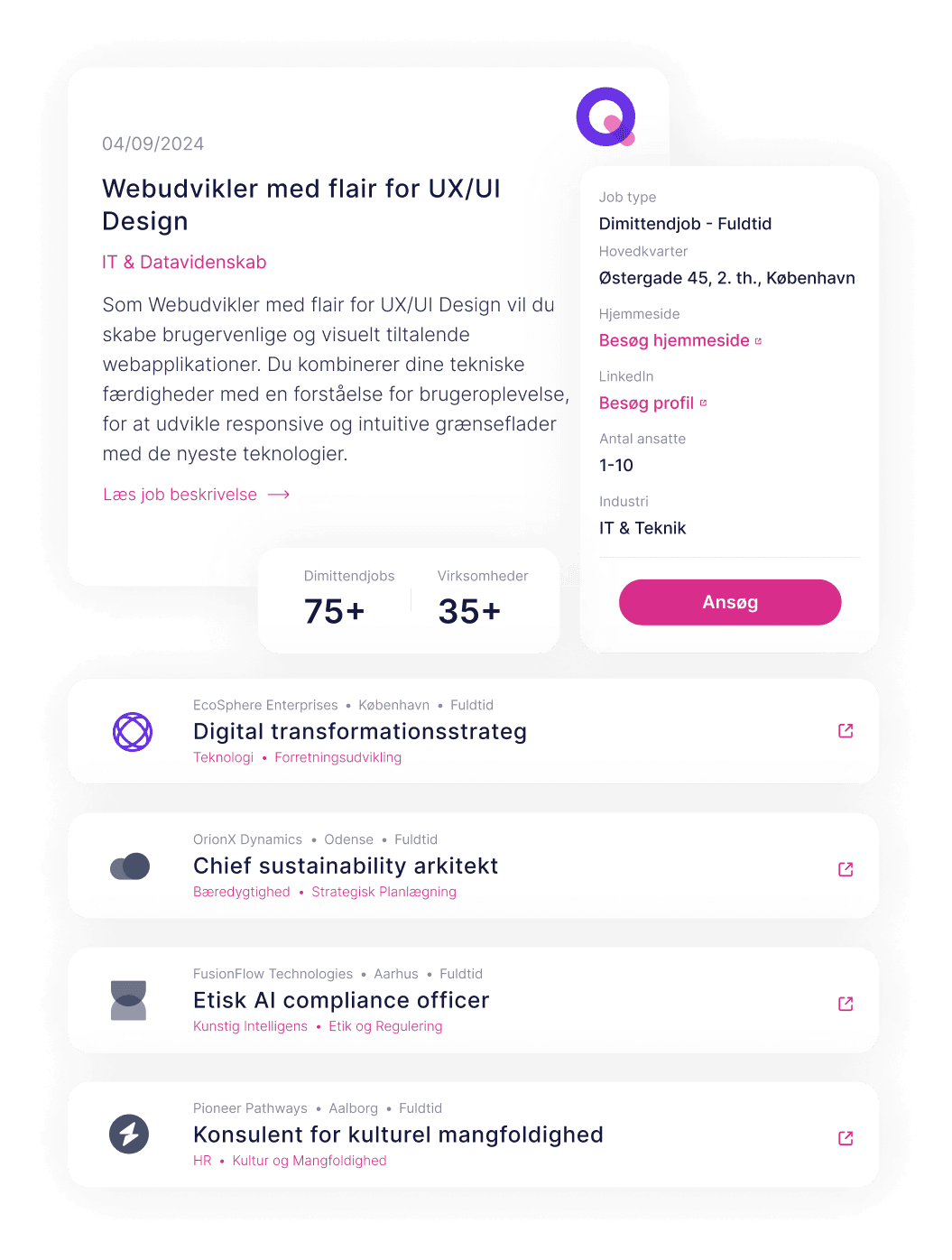 Din go-to platform til at finde ledige fuldtids og dimittend jobs i hele Danmark.