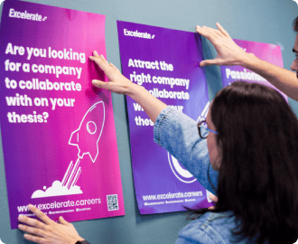 Excelerate er en platform, der hjælper studerende til at afslutte deres uddannelse med et stærkt afgangsprojekt. Vi giver studerende mulighed for nemt og gratis at få adgang til professionel sparring fra virksomheder inden for netop deres felt, så de kan forøge deres indlæring og skrive et bedre afgangsprojekt.
